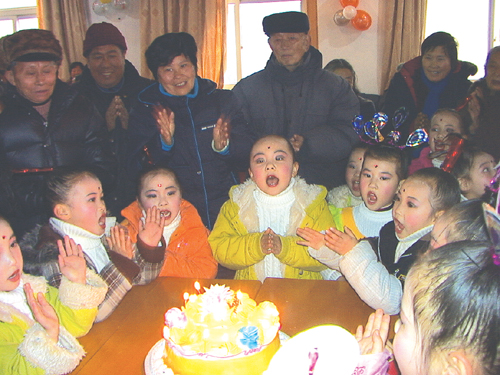 在“款款深情贺寿星 和谐社区大家亲”横幅标语下,整齐叠放着48只大蛋糕,剡湖街道东浦社区为年满70岁以上的47位寿星集体祝寿,社区工作人员为寿星们准备了水果糕点。老人们一边吃着生日蛋糕,一边观看社区幼儿园小朋友们的精彩表演,其乐融融。