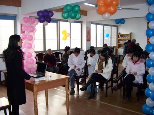 市中医院从去年下半年开始,定期到阳光山庄献爱心,上门为老人免费开展健康体检服务,受到了老人们的欢迎和称赞。图为近日中医院护士为阳光山庄护理员讲解护理知识。