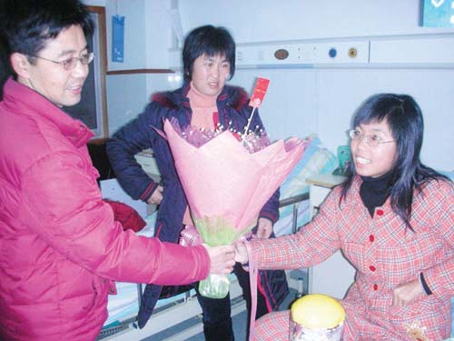 1月26日上午,黄泽中学校长王慧锋一行来到了市人民医院,看望慰问了身患尿毒症的17岁少女王珏,并将4万多元学校师生捐款交到了王珏的父亲手中。脸色苍白的王珏露出了久违的笑容。 与爱心款同时送到王珏手里的,还有一只大大的玻璃瓶,里面装满了同学们用彩纸折成的千纸鹤。“我知道,千纸鹤的寓意是幸福和美好,我明白同学和老师们对我的期待,我一定要尽快好起来。”王珏说。