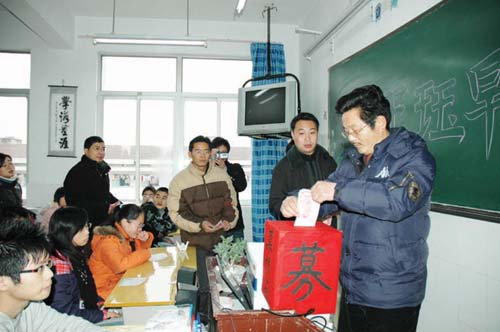黄泽中学立即成立了募捐领导小组,一方面组织人员去医院看望慰问,另一方面部署了捐款活动。“这是心的呼唤,这是爱的奉献……” 一时间,在黄泽中学校园内拨响了爱的旋律,你一元、我十元,你一百、我两百……从学生到老师,大家纷纷慷慨捐款,全校师生共捐4万余元,其中学生捐款16000元。师生们捐助的每一元钱所饱含的无价的爱心和无限的祝福,化成一缕缕阳光,汇成一股股暖流,给厄运中的王珏同学以增添战胜病魔的信心。 “愿我们的点滴付出凝聚成真情的力量,搭起爱心的彩虹,期待黯淡的生命重新焕发出灿烂的生机。”黄泽中学副校长陈伟说。