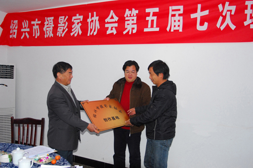 近日,东坡山庄被绍兴市摄影家协会授予“绍兴市摄影创作基地”称号,这也是我市首个绍兴市摄影创作基地。东坡山庄依山傍水,风景怡人,是摄影创作的理想场所。图为绍兴市文联副主席柳巨波,市摄影家协会名誉主席黄明发为基地授牌。