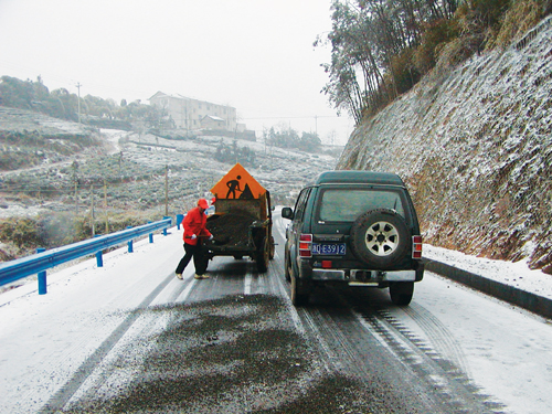 面对近期雨雪冰冻天气,各级各部门积极行动起来,确保最大程度减少恶劣天气对我市春运工作和人民生产生活带来的不利影响。图为市公路段人员昨日在绍甘线丰田岭段清除雪障。