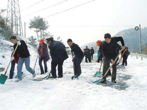 2月2日,市交通局组织150余干部职工连夜清除主要道路积雪,至昨日上午,两条高速公路相继开通,104国道嵊州段和嵊义线及时恢复正常客运。 随后,交通系统扫雪大军又赶赴绍甘线崇仁至谷来段除雪,沿线崇仁镇、谷来镇、王院乡政府按市政府的要求,及时组织了约100名乡镇干部和村民加入扫雪队伍。至昨日下午3时,30公里雪阻路段全部清通,随后解除封道、恢复正常通车。