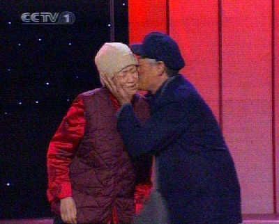 赵本山“亲吻”宋丹丹。 前晚2008年央视春节联欢晚会顺利降下帷幕,昨天下午春晚总导演陈临春与网友聊天,在聊天中陈临春力挺章子怡应该上春晚,同时他还帮王宝强澄清了在彩排中耍大牌的传闻。今年春晚的满意度,根据调查显示为8年来最高,在语言类节目中,“山丹丹”组合的《火炬手》最受欢迎,歌舞类中,最受网友欢迎的是周杰伦演唱的《青花瓷》。而为了赈灾临时增加的诗朗诵《温暖2008》获得很多网友的留言赞扬,王宝强领唱的《农民工之歌》也受到肯定。