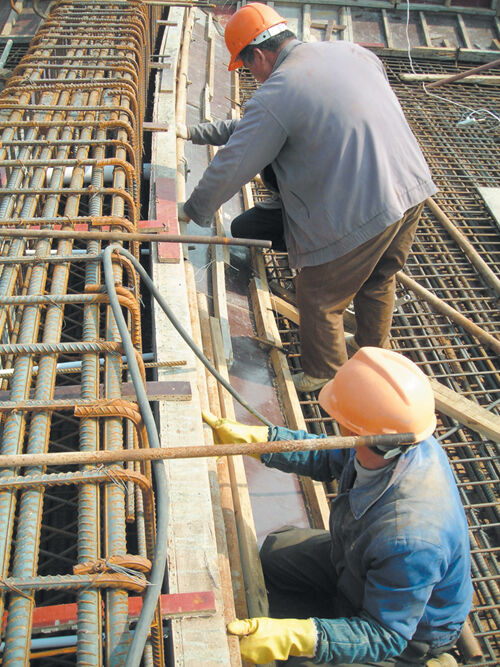 2月10日是大年初四,当许多市民还沉浸在新春的欢乐时,记者在双塔大桥建设现场看到,广大工程建设工人正在紧张忙碌着。 走进双塔大桥西引桥建设工地,只见一幅写有“决战五十天 确保双塔大桥主体工程三月十日贯通”的大红横幅随风飘扬,巨大的塔吊将一束束钢筋运到施工仓位,几十名建设工人正忙着铺模板、扎钢筋,另一端一块白色倒计时牌高高耸立…… 作为连接经济开发区与市区交通要道之一的双塔大桥横跨曹娥江,是经济开发区重要的基础设施项目。双塔大桥全长1097米,其中主桥长190米、宽33米,工程还包括西引桥和东引桥。为确保双塔大桥在3月10日前实现贯通,200多名建设工人发扬为大家、舍小家的精神,放弃新春假日和家人团圆的机会,正日夜奋战在东引桥和西引桥建设一线。 没有亲朋好友的觥筹交错,吃的是四菜一汤的年夜饭;没有新年的烟花爆竹,住的是简陋的小工棚,这是双塔大桥工程建设者的真实生活写照。“我们大年三十都是在工地上过的。”西引桥工地泥木班班长贾淑青是新昌人,虽然离老家只有几十分钟的路程,但因为工程工期紧张,贾淑青和近20名建设工人从去年年底以来一直坚守在西引桥建设现场,大年三十更是吃完晚饭后就到工地上忙碌到9点多。不过令贾淑青感到欣慰的是,妻子和两个孩子也陪他在工地上过了年。“一心一意为了大桥建设,今年没有过年的那种想法了。不过工作了这么多年,在工地上过年还是第一次。” 面对记者,贾淑青憨厚地笑道。 全长475米的西引桥是双塔大桥建设的重要组成部分,虽然前阶段由于拆迁、资金等原因耽搁了一些时间,但目前由五个班组、100多人组成的工程队伍正加班加点,加快工程建设进度,西引桥工程负责人吴伯康告诉记者:“今天距离3月10日还有29天,我们会想方设法把工程抢下来。” 与西引桥工地隔江呼应的还有奋战在东引桥工地上的100多名建设工人,从去年以来都坚守在建设一线。为按期完工,目前双塔大桥工程指挥部和项目方努力克服前段时间的雨雪恶劣天气,以及工期短、工人少和资金紧等困难,通过实行工程建设倒计时、增加建设工人数量、安排计划缩短工期等措施,全力冲刺工程建设进度。目前双塔大桥建设总体进展顺利,已经完成总工程量的80%以上。双塔大桥项目副经理、工程现场总指挥严细涛说:“市委、市政府十分重视工程建设,作为工程项目方和建设者,我们有决心在3月10日前拿下整个工程。”