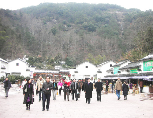 到正月初四这一天,百丈飞瀑风景区内的游人多了起来。