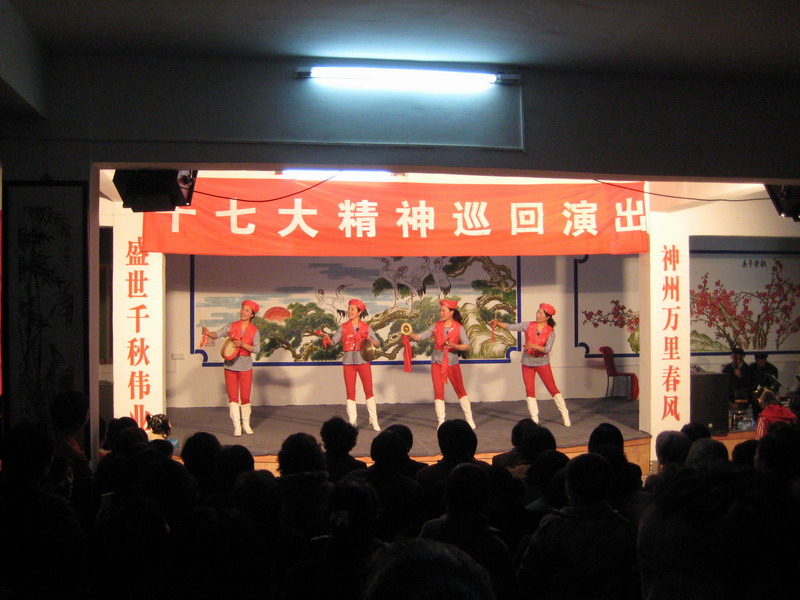 昨晚七点,十七大精神巡回演出活动在长乐镇四一公共文化活动中心进行演出,出演节目以歌舞形式为主,活动吸引了广大群众到场观看,现场气氛浓烈,掌声不断,演出获得了明显成效。