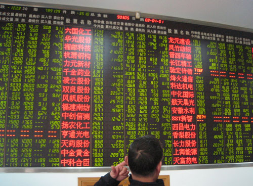 昨日中国股市再度重挫,上海、深圳领先指数分别下跌4.13% 和6.33%。以上证指数为例,从去年10月16日的最高6124.04点到今天4月1日收盘截止的3329.16点,已经快速跌去近一半,市场恐慌性杀跌仍在继续,大盘弱势不改。很多股民严重被套,几乎没有勇气查看自己的帐户,在这初春天气,似乎寒冬的残酷远未离去,也让大家深切体会到“股市有风险,入市须谨慎”绝不是一句空话。 图为笔者4月1日下午在嵊州某证券公司交易大厅拍摄到的一幕。面对一片深绿的大盘,股民很受伤。