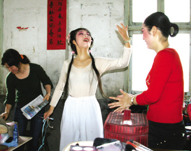为了泥桥村的那场戏,金婉玲特地向厂里请了10天的事假。每天,她早早吃过午饭,便“打的”来到泥桥村,晚上完戏,又“打的”回去。一天来回费用要160元。这是她平时做工三天的工资。