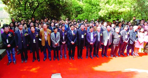 白云悠悠,微风轻柔。4月26日上午9点30分,由中华民族文化促进会、省书法家协会、嵊州市人民政府主办的第五届中国嵊州国际书法朝圣节在王羲之墓前隆重举行朝圣仪式。 在朝圣仪式上,市委副书记、市长盛秋平恭读祭文。 中华民族文化促进会常务副主席王石、副主席尉天池,绍兴市人民政府副市长谢卫星,省书法家协会、山东省书法家协会、中日文化交流中心和王羲之后裔代表等向书圣墓敬献了花篮。我市领导盛秋平、陈自军、杜洪苗代表全市人民和社会各界向书圣墓敬献了花篮。在场的全体人员怀着崇敬的心情向书圣三鞠躬。 副市长夏春燕参加了朝圣仪式。朝圣仪式由副市长周晓东主持。 26日上午,在金庭王羲之故居书圣殿前还举办了金庭笔会,笔会由副市长夏春燕主持,中华民族文化促进会副主席、中国书协顾问、中国标准草书学社社长尉天池为笔会开笔。 尉天池洋洋洒洒地写下了一首朱熹的《春日》:胜日寻芳泗水滨,无边光景一时新;等闲识得东风面,万紫千红总是春。省书协副主席杨西湖,山东省书协副主席、临沂市书协主席龙岩,绍兴市书协主席、省书协顾问袁长寿,省文化厅原厅长、省书法研究会会长钱法成,东南亚文化交流协会会长王德水等书法家亦用饱醮的浓墨和深情,泼墨挥毫, 表达了对书圣的敬仰之情。我市书法界及华堂小学学生代表也现场进行了书法表演。 市领导盛秋平、陈自军、夏春燕、周晓东、杜洪苗等参加了这次金庭笔会活动。与会领导和嘉宾还参观了王羲之故居书法收藏珍品展、嵊州——临沂两地书画作品联展、中日韩青少年书法交流通讯赛作品展。 26日上午,参加书法朝圣节的领导和嘉宾还兴致勃勃地参观游览了金庭镇华堂古村、千匾廊,品尝了羲之家宴。