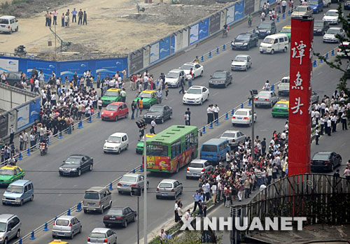 新华社快讯:汶川地震发生后,武汉市感到较明显震感。汉口京汉大道一栋高楼的人员纷纷往外跑。武汉外校等一些学校学生迅速疏散到操场上。