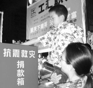 5月17日晚,在市区文化广场的“百姓周末”才艺大舞台上掀起了一阵阵爱的暖潮。1元、2元、20元、100元、5000元……舞台上的节目精彩纷呈,设在现场的几只募捐箱前人来人往,为灾区捐款十分踊跃。