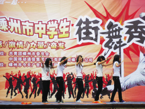 昨日上午,由团市委、中国移动嵊州分公司主办,今天广告协办的中学生街舞秀在市文化广场举行,嵊州一中、职技校、崇仁中学等学校的11支街舞队参加了展演。动感、激情、奋发的舞姿秀出了当代青少年的青春节拍。