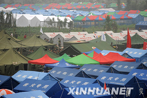 这是四川省什邡红白镇受灾群众居住的帐篷(5月24日摄)。汶川地震发生后,帐篷成了许多受灾群众临时的家。据四川抗震救灾指挥部提供的消息,截至5月28日,已有44.7万顶帐篷下拨四川灾区,尚需帐篷157万顶。 新华社记者 王晔彪 摄