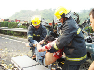 经过紧急商讨,救援人员确定了营救方案,并按照各自分工展开救援。高速交警增强现场警戒力度,并在新昌沙溪处实施分流,以控制事态进一步扩大;消防官兵利用破拆工具全力营救伤员,确保以最快速度救人;医护人员对伤员进行包扎,为救援争取时间。