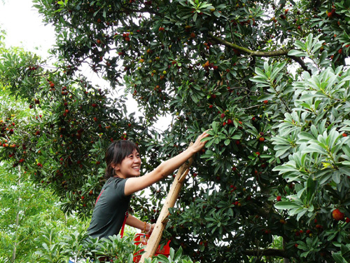 6月22日,在连日阴雨之后,天气有了好转,在通往金庭镇晋溪村的盘山公路上到处是前来摘杨梅的自驾车,有本市的也有外地的。贩销户在路边也趁着短暂的好天气收购杨梅,自驾车来的客人可以亲身体会上树摘杨梅的乐趣,也可以选购已经采摘好的,20元可以买到满满一篮。