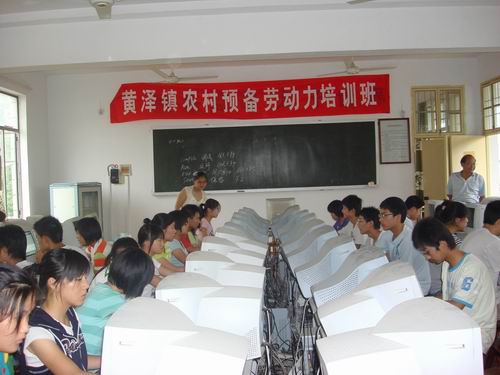 为进一步落实镇党委、政府关于社会主义新农村建设精神,大力开展农村预备劳动力培训,提高农民素质,促进农民转移,增加农民收入。由黄泽镇成人文化技术学校牵头并负责举办的为期一个月的黄泽镇农村预备劳动力电脑知识培训班在黄泽镇中全面启动。这次培训的方式是采取全免费。参加的对象主要是近三年来初、高中毕业的回乡青年。听到了这个可喜的消息之后,有许多渴望学习一技之长的农村青年纷纷前来黄泽镇文化技术学校按照规定报名参加培训。