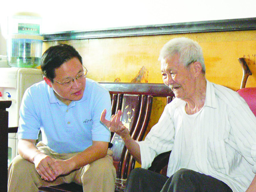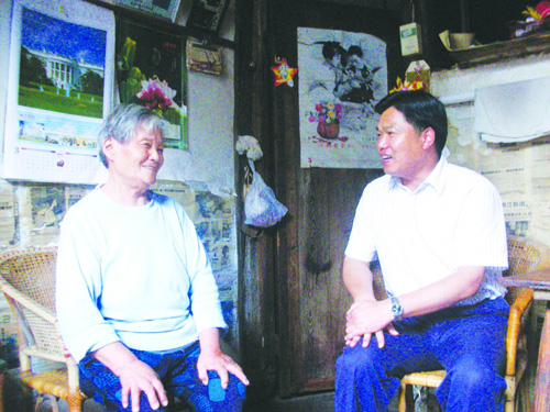 6月24日,市委书记郭敏,市委常委、组织部长朱晓董看望慰问了甘霖镇大小坑村老党员陈金昌。83岁的陈金昌1947年入党,参加过朝鲜战争。在仔细倾听了老人战争年代烽火岁月的回忆后,郭敏说,党的生日就要到了,你作为老革命、老党员,感谢你在革命事业中所作出的贡献,希望你保重身体,健康长寿。在甘霖镇,郭敏一行还看望慰问了东湖村党支部书记金国安,希望他继续发挥党员先锋模范作用,带领群众致富,为新农村建设作出更大贡献。