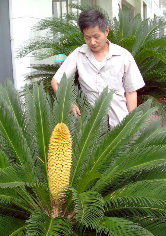 地处三江街道西湖村的泥塑工艺美术师徐亚良家中的两盆铁树近日来开出了鲜亮的棒槌形花朵,花朵高60厘米左右。一个月前,鹿山小学校园内的一棵铁树也开出了花朵,花朵高达70厘米。俗话说:“铁树开花,冷饭抽芽。”这种现象并不多见,故特此存照。