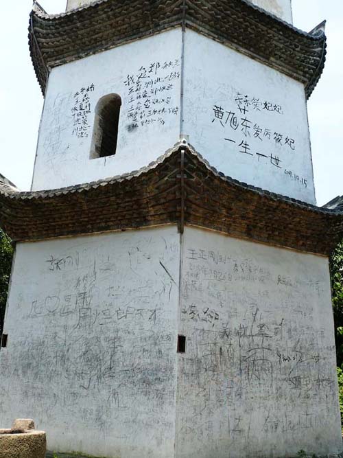 艇湖塔是我市标志性人文建筑之一,被列为重点文保单位,2002年有关部门拨专款对其进行了修缮。最近有网友报料诉称艇湖塔遭人为涂损严重,且愈演愈烈。近日笔者实地查看后发现,洁白的塔身四周到处是人为肆意留下的笔迹,有“XX到此一游”等不堪入目的涂鸦文字。文物保护的好坏,能直接反映一个城市的文明程度。在此呼吁,每一个市民都要爱护家乡的文物,为文明嵊州的创建尽到自己的责任。