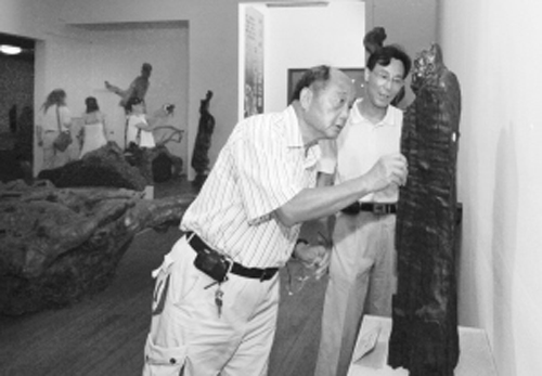 7月7日,著名油画家秦大虎一行参观了艺术村,对嵊州根雕、竹编、泥塑、紫砂等民间艺术的艺术水准给予高度评价,同时又对“艺术村”这一平台在传承和发展中起到的推动作用表示赞赏。(马玉龙 摄)
