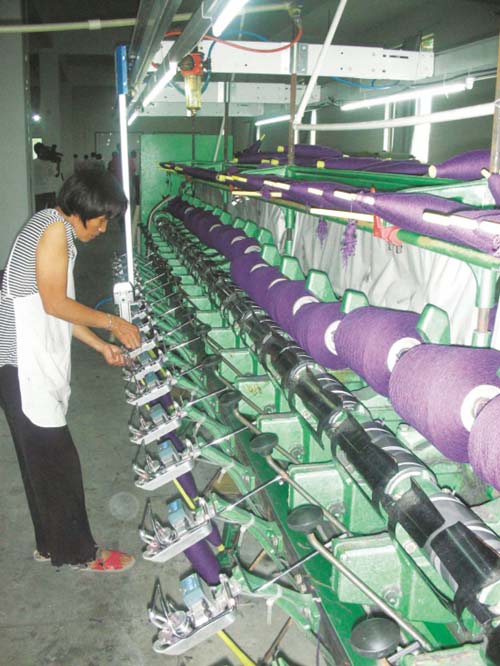市畜产品有限公司在培育发展良种兔的基础上,进一步向兔毛加工、出口领域拓展。近几年来公司收购、加工、出口兔毛5000多吨,出口创汇达4000多万美元。图为公司加工车间。 (马渭员 摄)
