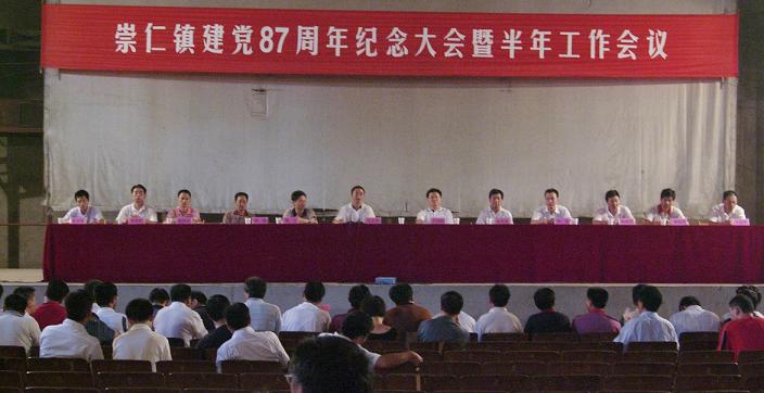 7月18日上午,崇仁镇建党87周年纪念大会暨半年工作会议在崇仁电影院召开。镇党政班子成员、全体机关干部、各单位负责人300多人参加了会议。会议由镇长汪正浩主持。