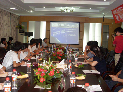 7月12日下午,浙江丰利粉碎设备有限公司董事长余绍火在丰利粉碎设备有限公司会议室为杭州电子科技大学管理学院分团委学生会暑期社会实践分队队员们授课《大学生创新与成才》。