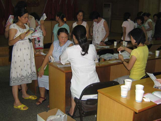 为进一步强化出生缺陷干预,切实提高出生人口素质,黄泽镇根据嵊人口计生(2008)32号文件精神,出台了专题文件,并通过广播、黑板报、宣传窗等宣传途径向广大育龄群众宣传优生知识,各计生专干更是冒酷暑下村为符合条件的对象分发〈〈优生促进工程服务券〉〉。7月24日,我镇特邀市计生站妇科专家和市人民医院化验室的医生上门为符合条件的育龄群众提供免费的优生检测。当天共有40位对象接受了免费的服务,此项得民心顺民心的“民生工程”充分得到了广大育龄群众的肯定。