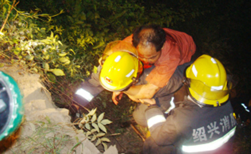 当日零时17分,市消防大队接到“110”指挥中心指令后,由值班抢险救援消防车载着7名官兵火速赶赴现场。因伤者在5米多高的路基下,为及时将其救起,几名消防官兵抬来6米拉梯,靠垂直的路基架设好梯子。凌晨1点12分许,消防战士赵飞在战友的协助下,背着受伤的摩托车车主艰难地爬上拉梯,将其送到等候在路面的急救车上。目前,事故原因有关部门正在调查之中。