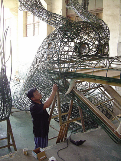 据了解,这条竹编巨龙将参加今年10月份在上海举行的“中国民间艺术节”。