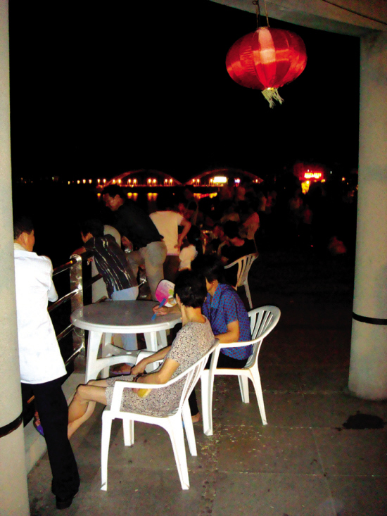 经营茶楼的张夏良告诉记者:“现在晚上生意还是挺不错的,一般到八点钟的时候,人就慢慢多起来了。因为靠近江边,晚上风很大的,来这里乘凉最好了,11点以后人才会渐渐散去。”