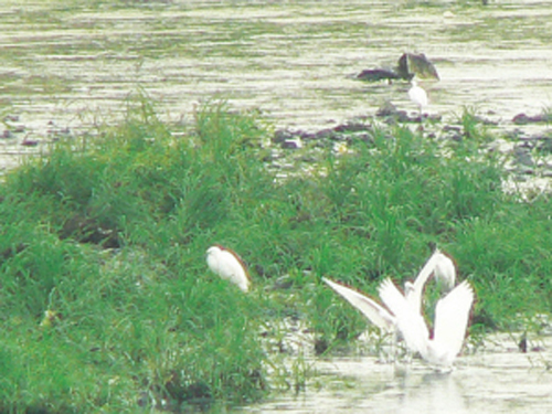近年来,我市加大了环境治理工作,尤其是对曹娥江流域环境进行综合治理,随着嵊新污水处理厂调试运行,新昌江水环境日趋改善。图为新昌江嵊州段、省地表水水质自动监测站黄泥桥站下游,成群白鹭正在江面上嬉水觅食。