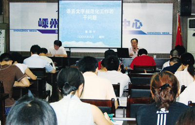 为进一步做好文字工作,迎接国家三类城市语言文字工作评估验收,昨晚,市新闻传媒中心邀请绍兴文理学院副教授屠国平为全体编辑记者作了语言文字规范化工作专题讲座。