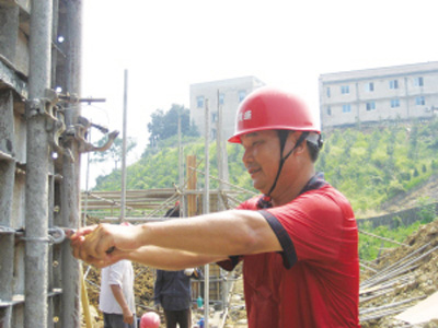 到工地一下车子,热浪便滚滚扑面而来。在坝上,4名工人正抬着沉甸甸的铁轨在铺设轨道,他们一边抬一边喊着有节奏的口号,他们的衣服上已结了白花花的盐花。工人沈友根告诉记者:“我们是吃着前岩水库的水长大的,水库建好了,对我们附近的村民来说是一件好事。尽管这几天很热,人也很累,但我们都乐意在这里干活。”