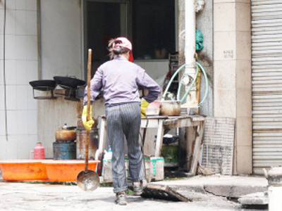 8月18日中午11点,那女人同样的装备,沿同样的路线,又开始新一天的“打捞”。到三江城四海路口,时间是12点15分,同上一次一样,她又钻进其中的一条弄巷。我们在外面守候了几分钟,却久久未见她出来,走到里面一看,她却早已“人间蒸发”了。