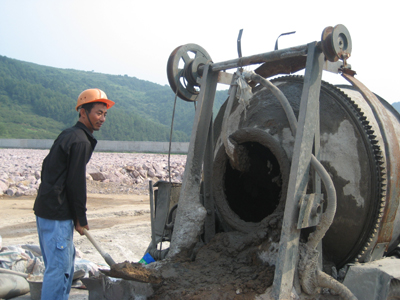 远处,挖掘机正在平整场地,运输车不断运送石块进场填地基。近处,几位工人用搅拌机拌着混凝土。可能实在太热,一位工人用安全帽舀起一帽子的水淋在身上。来自重庆的何师傅告诉记者:“我们工程队从5月份就进场了,到现在已有3个多月。这段时间正是一年中最热的时候,天天在工地,高温实在把我们害苦了。不过,现在这个工程的土建工程已基本完成了,我们觉得很有成就感。”