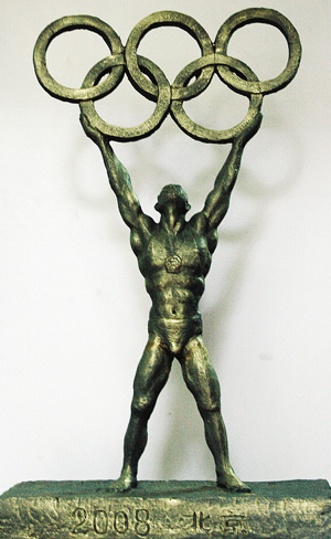 我市民间工艺家蔡国平在奥运期间创作的雕塑作品《崛起》于8月24日完成,整幅作品线条流畅,中国运动员手擎五环,以雕塑的手法勾勒出奥林匹克人类的体魄与精神,给人以力量和美的愉悦。