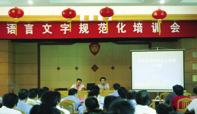 为从源头抓好社会用字的规范与管理,促进我市广告语言文字使用的规范化、标准化,8月18日下午,市工商局组织全体干部职工、全市各广告公司的广告审查人员和专业技术人员参加语言文字规范化培训会。