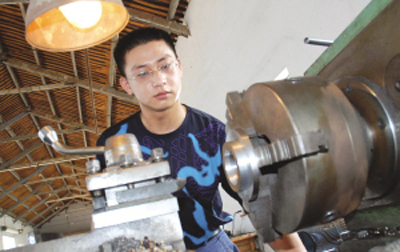 2004年创建的崇仁镇富四村个私集聚区,目前已有入区企业29家,其中规模企业12家,提供了2000多个就业岗位,发展成为省中小企业创业基地。图为该集聚区一机械企业内技工工作的情形。(金海英 沈才宝 摄)