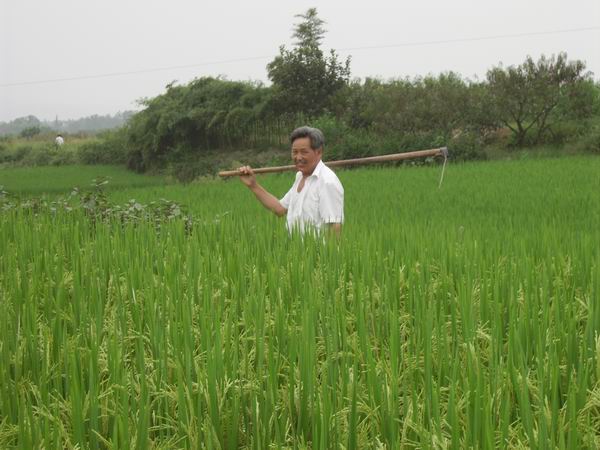 屠绍千是一位多年在黄泽镇从事农技、农业管理的老干部,如今虽已从政府大院退休回家,但他在家不清闲,仍旧迷恋着他那一生从事的农村、农业、农田。他一有空,经常去那当年工作过的田野上走走,当发现谁家的田块里有病虫害,常常会去主动指导。特别是村里有许多老农民,仍然围着他,向他请教有关农技上的许多事情,而他对前来询问的乡亲们更是热情相待。同时,他还现身说法,用自己多年积累的农技经验与科学的管理方法种出了亩产至少在550公斤以上的杂交水稻,为广大村民树立了科学种田的样板。