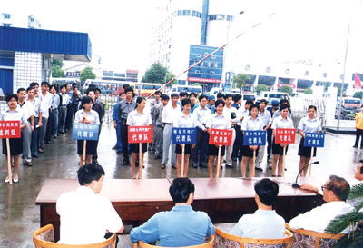 在长运集团,企业文化建设并不是虚无缥缈的,更不是单纯的一句口号或标语,而是实实在在体现在各个岗位每位员工的身上。以文化建设促经济效益,在这里成了和谐发展的强音。集团自上而下,每个子公司、每个岗位、每位职工都是企业文化建设的载体。企业根据发展态势,通过实施“优质服务、优美环境、优良秩序”的措施,加强对场站、车队的规范化管理。从提高服务员素质入手,进一步开展星级、优质服务,抓好ISO9001认证,安装语音提示器、电子监控设施和GPS定位仪等硬件;为提高服务质量,对站务人员进行哑语、英语会话培训;充分发挥工、青、妇组织作用,开展“青年文明号”、“巾帼建功示范岗”、文明营运示范车、文明出租车创建活动,使文明创建工作扎根且开花于基层。