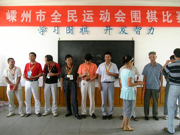在嵊州市全民运动会围棋比赛中,崇仁镇代表团荣获乡镇