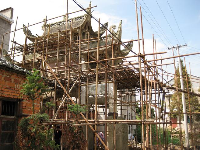 近日,投资10万元的崇仁镇范村董氏纯洁坊抢救性维修工作正在紧张进行。范村董氏纯洁坊建于清朝期间,已有200余年历史,为嵊州市文物保护单位。由于该牌坊年久失修,危在旦夕,亟须保护,为此,崇仁镇人民政府和嵊州市文物管理处决定对其进行抢救性维修,这对于传承文化遗产,保护历史文物,都具有十分重要的意义。