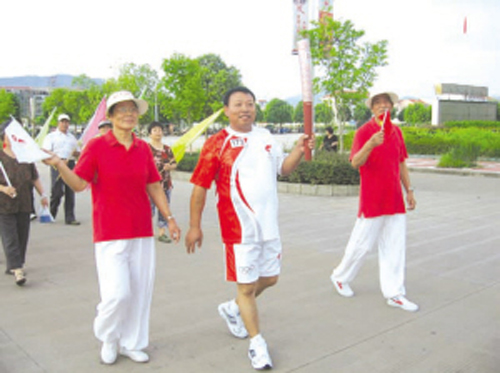 5月17日,奥运火炬在历史文化名城绍兴传递。我市农民奥运火炬手、长乐镇上南庄村党支部书记周良兴参加了火炬传递。