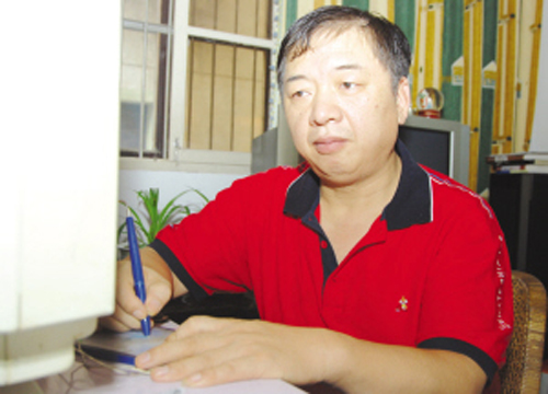 钱增祥是长乐镇长乐二村的一位农民,今年57岁,长得矮墩墩,讲话慢条斯理。记者见到他时,钱增祥正在客厅里修改他的长篇小说《孤衾春寒》。