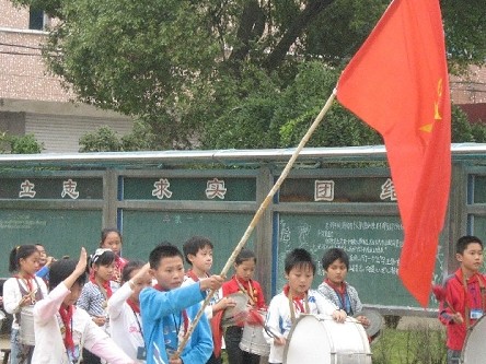 10月13日下午,崇仁镇富润小学举行了少先队建队59周年纪念活动暨新队员入队仪式,全校师生共500多人参加了此次活动。在庄严的国旗下,大队辅导员宣布了新队员入队名单;高年级的老队员们为一年级80余名学生系上了红领巾;接着,新队员们表决心、宣誓,虽个个稚气十足,但都是肺腑之言;最后活动在全体队员庄严的呼号声中结束。活动使新老队员度过一个愉快的建队节,感受了红领巾的光荣。