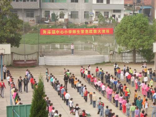 一直来,黄泽镇校坚持以“学生安全,校园和谐”为第一的思想不动摇,学校每学期至少要举行一次大型的紧急情况疏散演练,除此之外,在平时的学校工作中,时刻绷紧安全这根弦。如为做好学生接送车的管理,学校专门成立了学生接送车管理小组,对接送车驾驶员协同车管部门进行定期培训,对车辆定期检查,对学生每天按规定进行上车、下车清点人数。这个机构与其说是学校的接送车管理组,不是说是一个名副其实的车辆调度室,做到时间准时,人员到位。又如学校每天派出值日教师到公路入口处进行迎送学生上学、放学等等。工夫不负有心人,由于该校一步一个脚印地做好安全教育工作,学校十几年一直和谐平安,确保一代新人的健康成长。