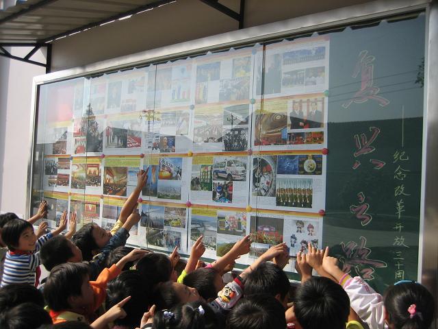 10月17日,崇仁镇纪念改革开放30周年——“复兴之路”图片巡回展览第一站在升高小学开展。