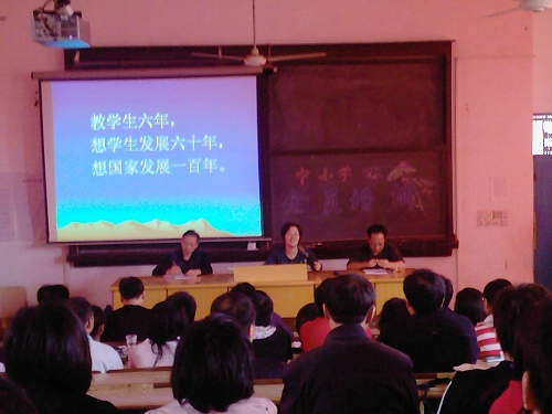 10月24日,崇仁镇中小学班主任全员培训在崇仁镇中阶梯教室举行。此次培训邀请育英小学副校长、中学高级教师韩纪兰老师作专题讲座,中心学校领导与全镇的班主任一起参加了培训。培训分两场举行:先观摩了崇仁镇中初三(六)班《文明礼仪伴我行》主题班会,此次班会通过看录像、阅读材料、讨论等系列活动使学生明白讲文明礼貌是中华民族的优良传统,并把礼仪常规贯穿到小品、朗诵等各种表演形式之中;其次韩纪兰老师就班级管理、班风建设、后进生的转化和问题学生的诊疗作专题讲座,韩老师例举了大量的鲜活的事例和图片,让班主任明确新时期班主任工作要转变老的教育观念,要变强制灌输为积极引领,让受训者受益匪浅。